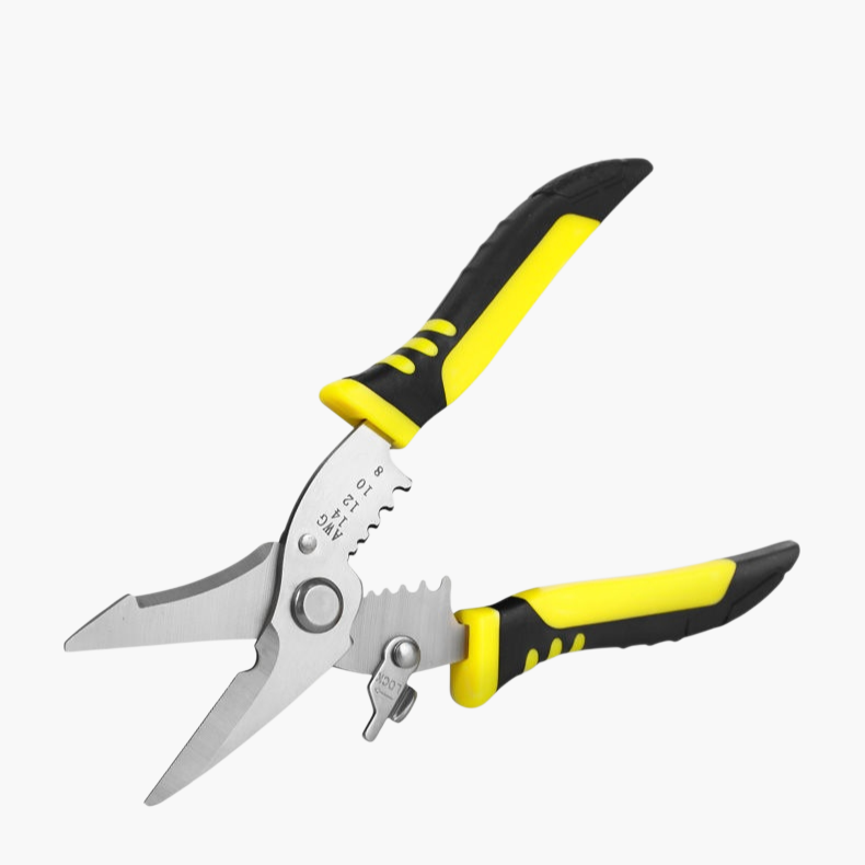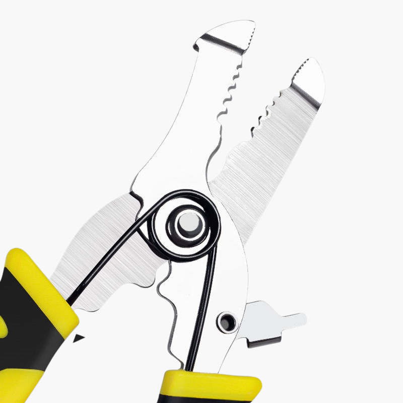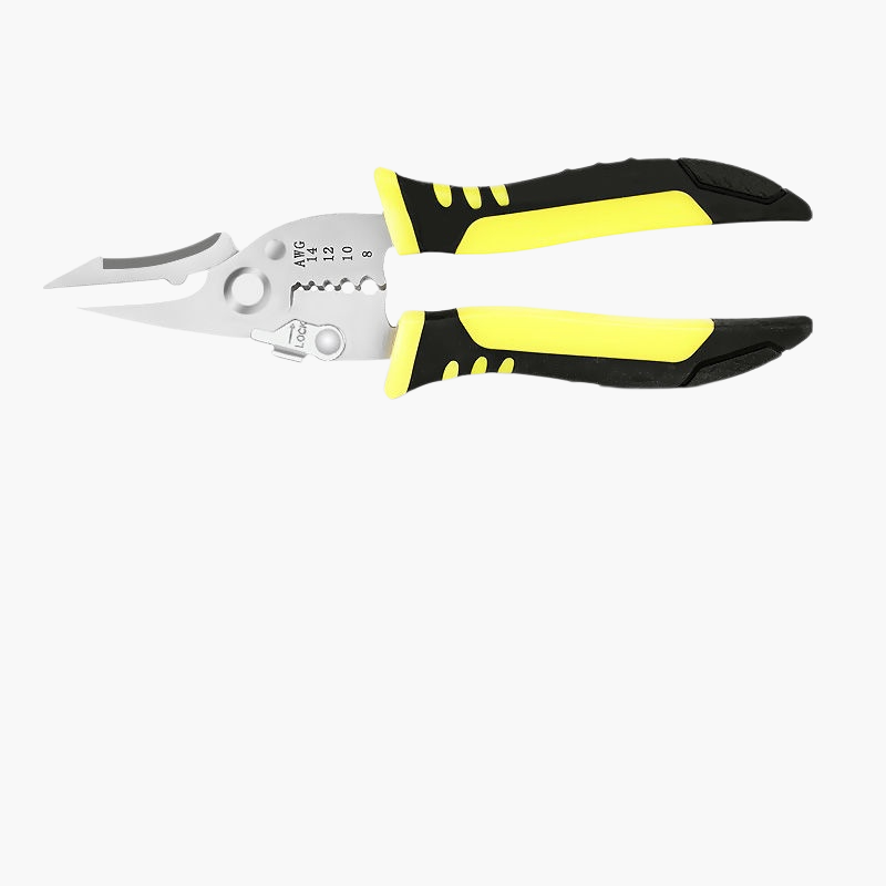 7-in-1 wire stripping pliers offer wire cutting, crimping, stripping, shearing, and bolt cutting in one tool. Durable steel construction. Ergonomic handle. Suitable for electrical, automotive, and DIY projects.